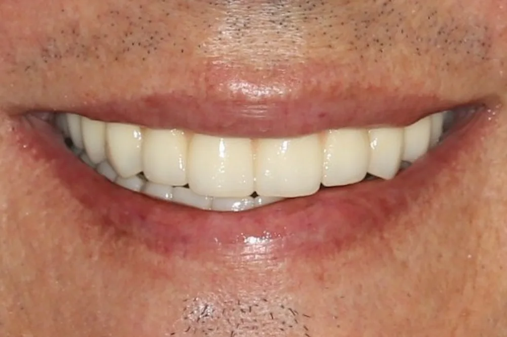 The full-arch implant process is completed in multiple phases. You will typically leave with fixed temporary teeth the same day as surgery, while your final restoration is completed after a healing and refinement period.